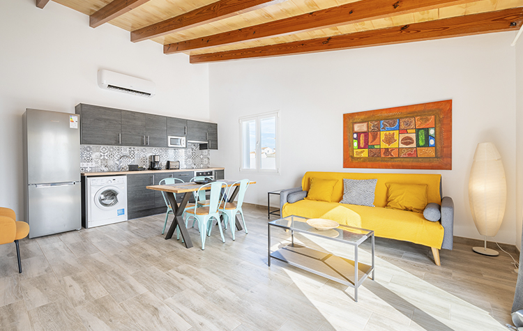 El apartamento de 60m2 cuenta con sofá, Televisión por satélite, para hacer tu estancia más agradable. Con una pequeña cocina, bien equipada con anafe electrico, horno microondas, nevera, cafetera,tostadora, pava eléctrica y utensillos de cocina.